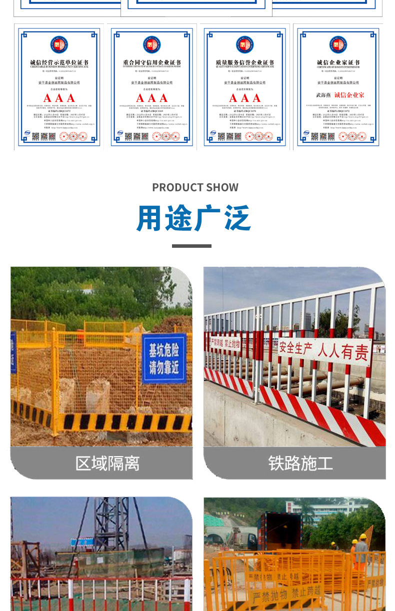 本网页所展示的有关【定型化防护栏工地施工安全防护围栏建筑工程临边隔离警示 基坑护栏 1套_栏杆_安平县金创丝网制品有限公司】的信息/图片/参数等由市政工程网的会员【安平县金创丝网制品有限公司】提供,由市政工程网会员【安平县金创丝网制品有限公司】自行对信息/图片/参数等的真实性、准确性和合法性负责,本平台(本网站)仅提供展示服务,请谨慎交易,因交易而产生的法律关系及法律纠纷由您自行协商解决,本平台(本网站)对此不承担任何责任。您在本网页可以浏览【定型化防护栏工地施工安全防护围栏建筑工程临边隔离警示 基坑护栏 1套_栏杆_安平县金创丝网制品有限公司】有关的信息/图片/价格等及提供【定型化防护栏工地施工安全防护围栏建筑工程临边隔离警示 基坑护栏 1套_栏杆_安平县金创丝网制品有限公司】的商家公司简介、联系方式等信息。