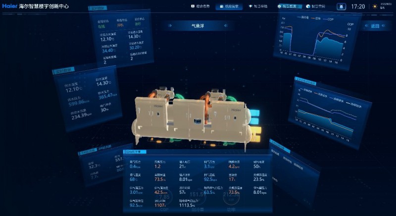 以水机组获奖项目海尔物联网全球创新中心为例,就通过软硬件集成定制,满足了节能、智慧等需求。具体来看,项目应用以磁、气悬浮中央空调为核心的高效机房方案,将机房内各设备等接入云端,整体系统节能性提升50%左右。此外,楼宇大脑集成了空调、电梯、照明、水、电、安防等18个子系统、5000+设备点位,在最优节能运行模式下,各个子系统自主调节、协同配合,实现运维人员减少15%,办公效率提升30%的体验。
