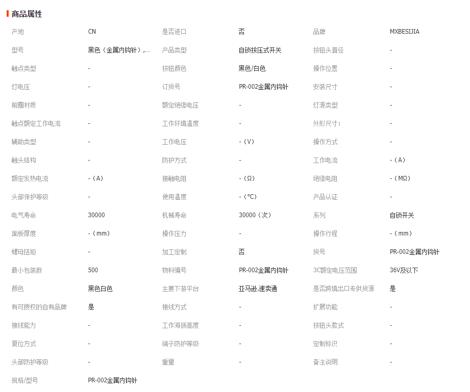 本网页所展示的有关【金属内钩针 门锁开关 自锁按压式 弹簧锁扣汽车眼镜盒垃圾桶卡扣_电气照明城_深圳市倍思佳电子有限公司】的信息/图片/参数等由市政工程网的会员【深圳市倍思佳电子有限公司】提供,由市政工程网会员【深圳市倍思佳电子有限公司】自行对信息/图片/参数等的真实性、准确性和合法性负责,本平台(本网站)仅提供展示服务,请谨慎交易,因交易而产生的法律关系及法律纠纷由您自行协商解决,本平台(本网站)对此不承担任何责任。您在本网页可以浏览【金属内钩针 门锁开关 自锁按压式 弹簧锁扣汽车眼镜盒垃圾桶卡扣_电气照明城_深圳市倍思佳电子有限公司】有关的信息/图片/价格等及提供【金属内钩针 门锁开关 自锁按压式 弹簧锁扣汽车眼镜盒垃圾桶卡扣_电气照明城_深圳市倍思佳电子有限公司】的商家公司简介、联系方式等信息。