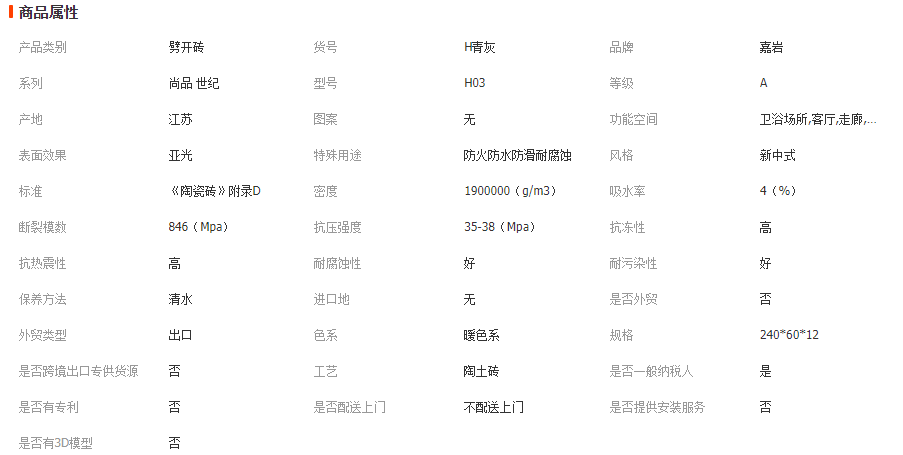 特性:抗冻、抗压、抗折、低吸水率