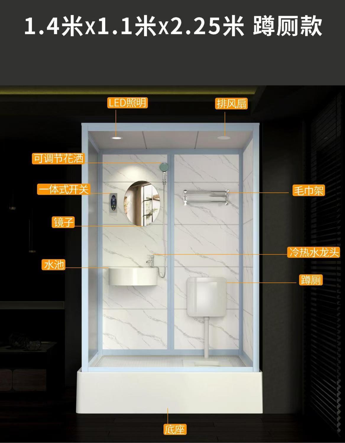 医院方舱隔离整体淋浴房一体卫生间集成干湿分离经济快装出租工装
