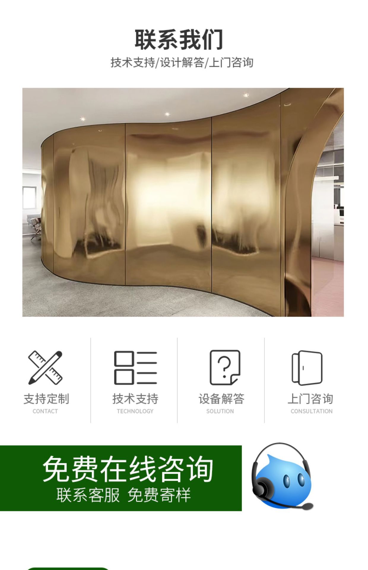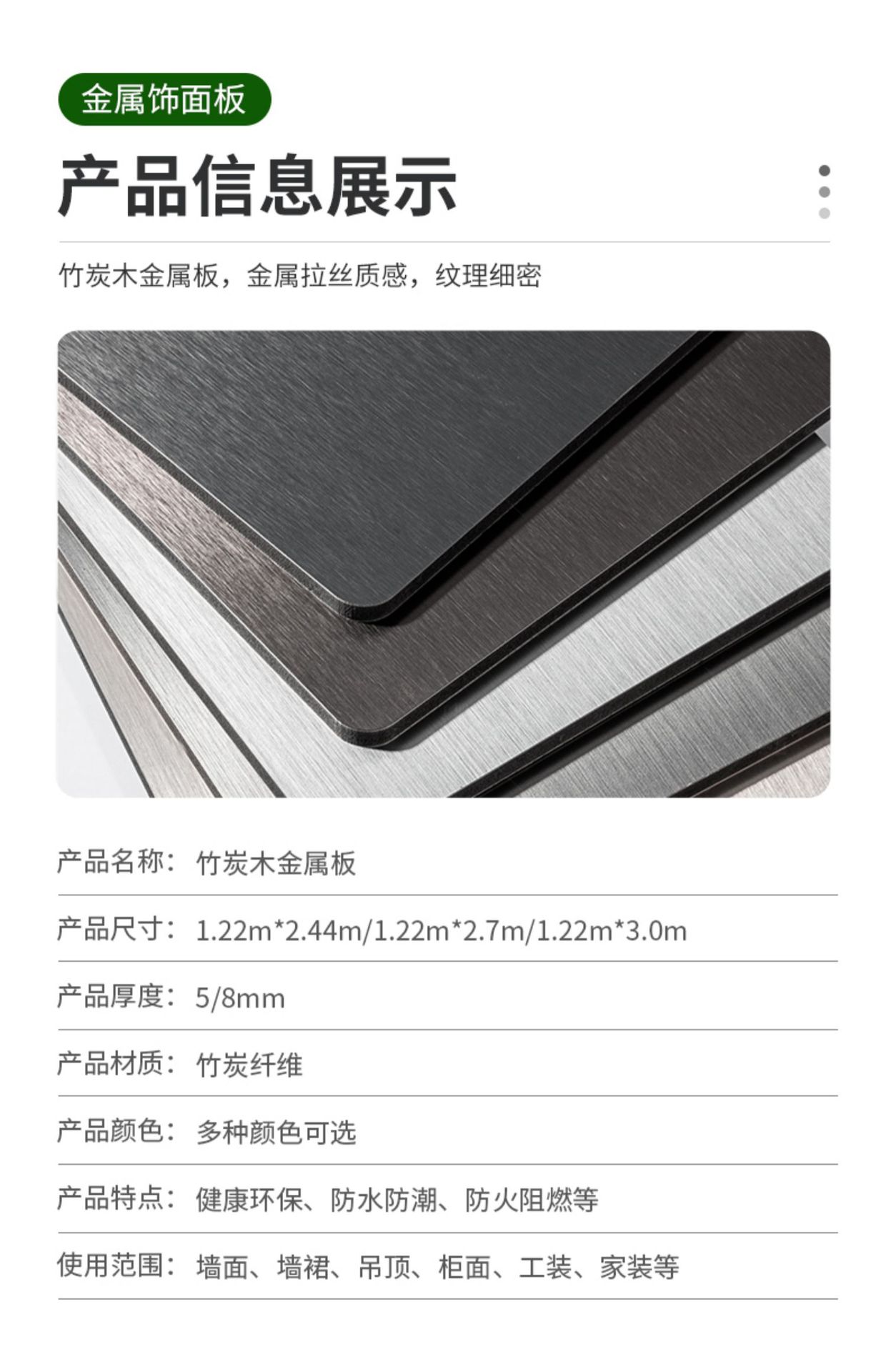本网页所展示的有关【高清镜面护墙板金属拉丝PET酒店KTV商场装饰板_装饰板_佛山市銮航装饰材料有限公司】的信息/图片/参数等由市政工程网的会员【佛山市銮航装饰材料有限公司】提供,由市政工程网会员【佛山市銮航装饰材料有限公司】自行对信息/图片/参数等的真实性、准确性和合法性负责,本平台(本网站)仅提供展示服务,请谨慎交易,因交易而产生的法律关系及法律纠纷由您自行协商解决,本平台(本网站)对此不承担任何责任。您在本网页可以浏览【高清镜面护墙板金属拉丝PET酒店KTV商场装饰板_装饰板_佛山市銮航装饰材料有限公司】有关的信息/图片/价格等及提供【高清镜面护墙板金属拉丝PET酒店KTV商场装饰板_装饰板_佛山市銮航装饰材料有限公司】的商家公司简介、联系方式等信息。